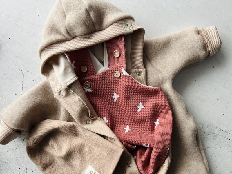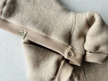 Introducing a beautiful winter jumpsuit in a very warm way. Merino wool knit gives great comfort, it is not stiff and too thick, so it provides comfort while wearing. The fleece is soft and ideal for walks in the spring / autumn season.