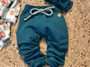 Haremki are a very well-known cut of trousers in our collections. These are classic pants with long legs. Designed for the youngest, whose comfort we always put in the first place. Thanks to the elastane in the composition, the shorts are flexible and do not restrict the child's movements. Haremki were sewn in Poland, from safe ecological cotton knitwear 95% and elastane 5%. They have two practical pockets on the front. Belt finished with a soft welt with a sewn-in soft elastic band. Equipped with a cotton string, performing a decorative function (it is only sewn, does not pull the belt).
