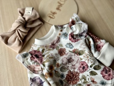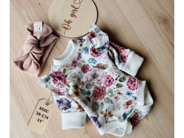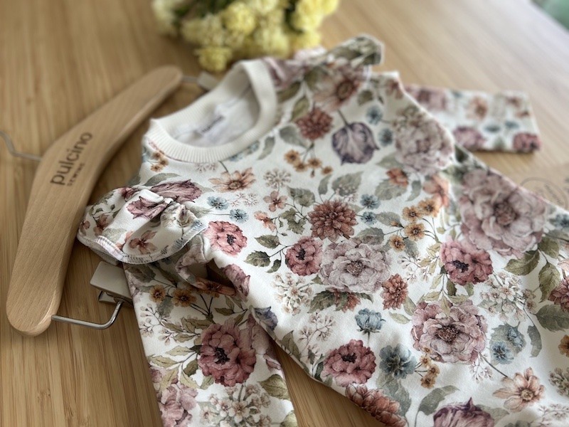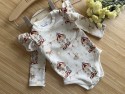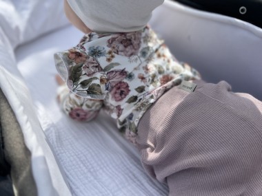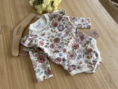 Bodziak posiada urocze falbanki przy ramionkach, co nadaje mu wdzięczności. Uszyty z dzianiny bawełnianej najwyższej jakości, jest mięciutki i elastyczny.