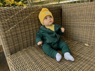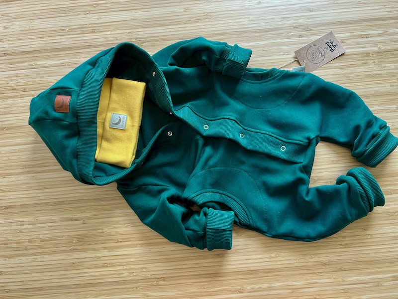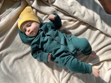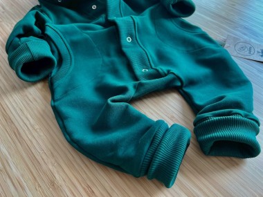 Nasz bestseller sklepowy-kombinezon uszyty z mięciutkiej dzianiny dresowej, w najwyższej klasie materiałów, który rośnie razem z maluchem. Specjalnie zaprojektowane ściągacze przy nogawkach i rękawkach można dowolnie podwijać i odwijać dodając ubranku długości. Obszerny kaptur został uszyty z dwóch warstw materiału, co dodatkowo chroni główkę przed utratą ciepła, bez problemu pomieści również każdą czapeczkę gdy szykujecie się na spacer. Kombinezon jest zaprojektowany w stylu oversize, jego luźny krój daje maluszkowi komfort i nie krępuje jego ruchów. Możesz go zakładać bezpośrednio na ciało lub jako drugą warstwę odzieży. Zapinany za pomocą bezniklowych nap, nie uwiera i nie drażni skóry maluszka. Bardzo łatwy w zakładaniu, co doceni każdy rodzic. Okrągłe kieszenie wykończone ściągaczem dodają ubranku uroku.