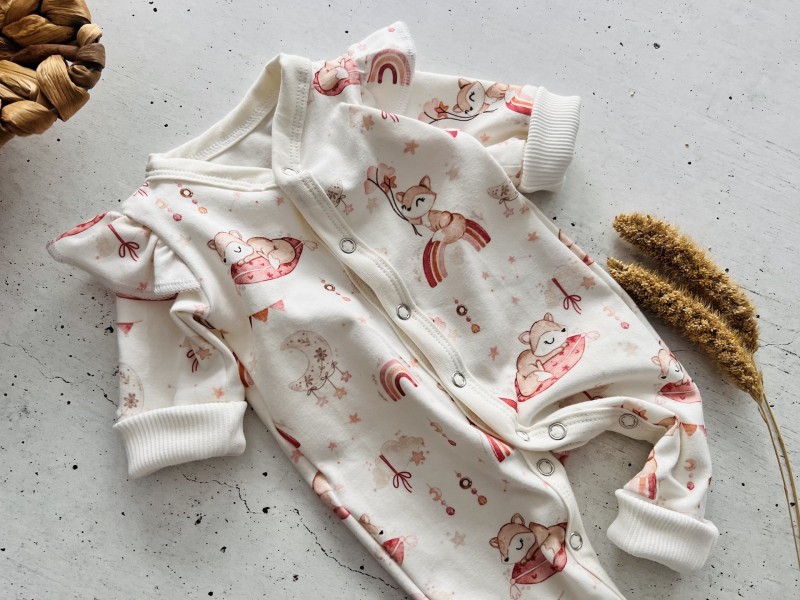 Rampers uszyty z dzianiny bawełnianej najwyższej jakości, jest mięciutki i elastyczny.
