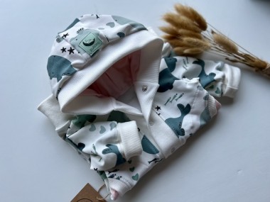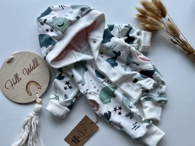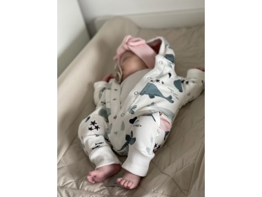 Nasz bestseller sklepowy-kombinezon uszyty z mięciutkiej dzianiny dresowej, w najwyższej klasie materiałów, który rośnie razem z maluchem. Specjalnie zaprojektowane ściągacze przy nogawkach i rękawkach można dowolnie podwijać i odwijać dodając ubranku długości. Obszerny kaptur został uszyty z dwóch warstw materiału, co dodatkowo chroni główkę przed utratą ciepła, bez problemu pomieści również każdą czapeczkę gdy szykujecie się na spacer. Kombinezon jest zaprojektowany w stylu oversize, jego luźny krój daje maluszkowi komfort i nie krępuje jego ruchów. Możesz go zakładać bezpośrednio na ciało lub jako drugą warstwę odzieży. Zapinany za pomocą bezniklowych nap, nie uwiera i nie drażni skóry maluszka. Bardzo łatwy w zakładaniu, co doceni każdy rodzic. Okrągłe kieszenie wykończone ściągaczem dodają ubranku uroku.