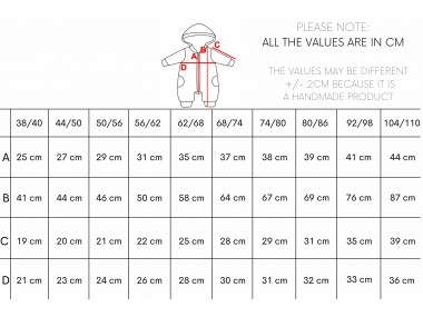 Pamiętaj, że nasze produkty szyjemy i kroimy ręcznie w naszej pracowni, dlatego ich wymiary mogą się delikatnie różnić, od tych uwzględnionych w tabeli.