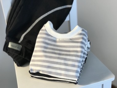 W skład kompletu nie wchodzi body w czarno-białe paseczki, możesz je jednak zakupić osobno w naszym sklepie